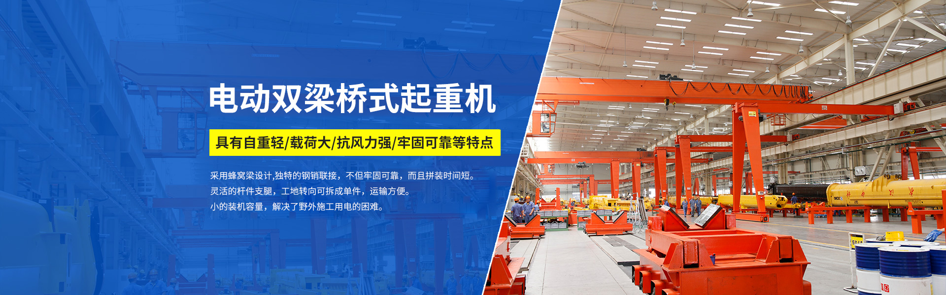 提梁機(jī)是一種為橋梁建設(shè)而專(zhuān)門(mén)設(shè)計(jì)的一種門(mén)式起重機(jī)。提梁機(jī)主要由拼裝式主梁、支腿、天車(chē)等組成,構(gòu)件間采用銷(xiāo)軸及高強(qiáng)螺栓連接,易于拆裝、運(yùn)輸;與普通門(mén)式起重機(jī)相比,安裝方便快捷,經(jīng)濟(jì)實(shí)用。